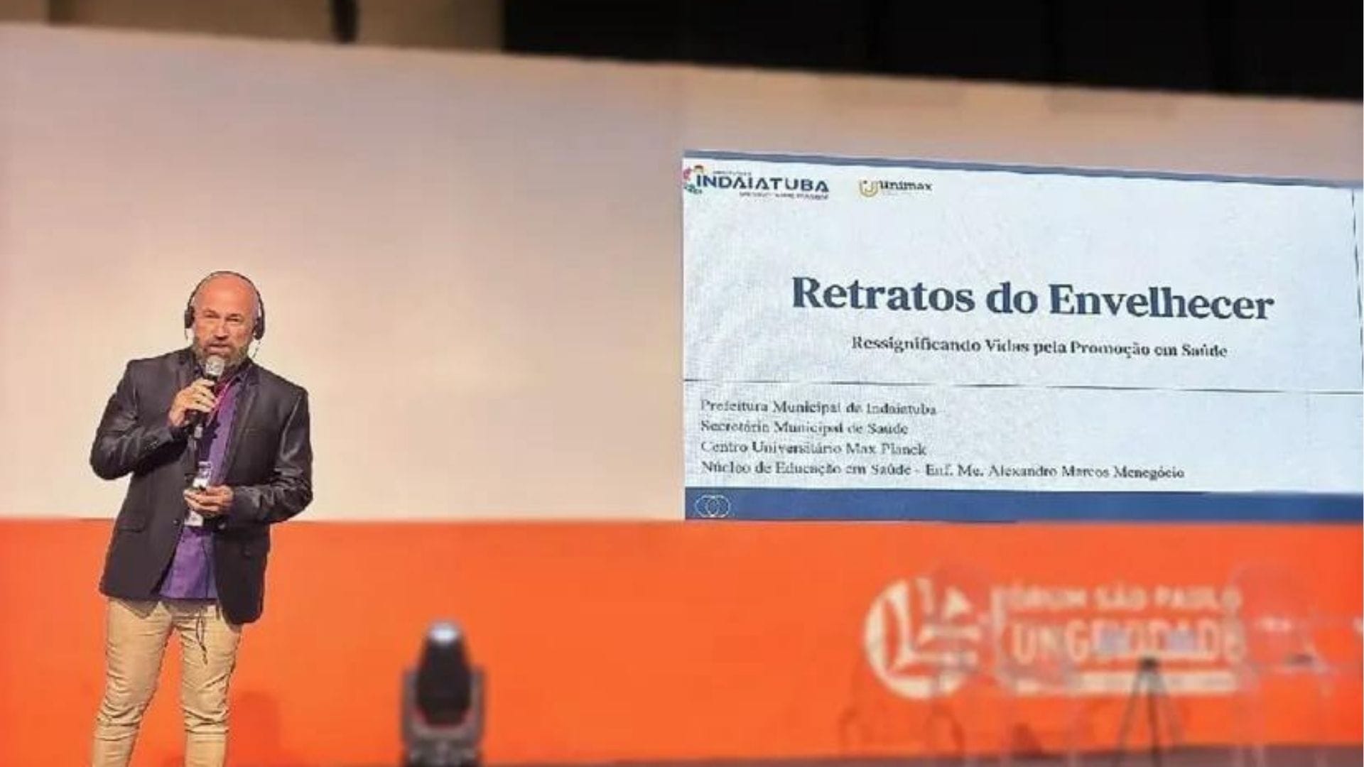 Durante o fórum, o docente apresentou o projeto “Retratos do Envelhecer: Ressignificando Vidas pela Promoção em Saúde”, desenvolvido pela UniMAX em parceria com a Prefeitura de Indaiatuba, por meio da Secretaria de Saúde. “Tive a honra de representar o município de Indaiatuba apresentando esse projeto que valoriza o envelhecimento ativo, a autonomia e a qualidade de vida das pessoas idosas”, afirmou Menegócio.